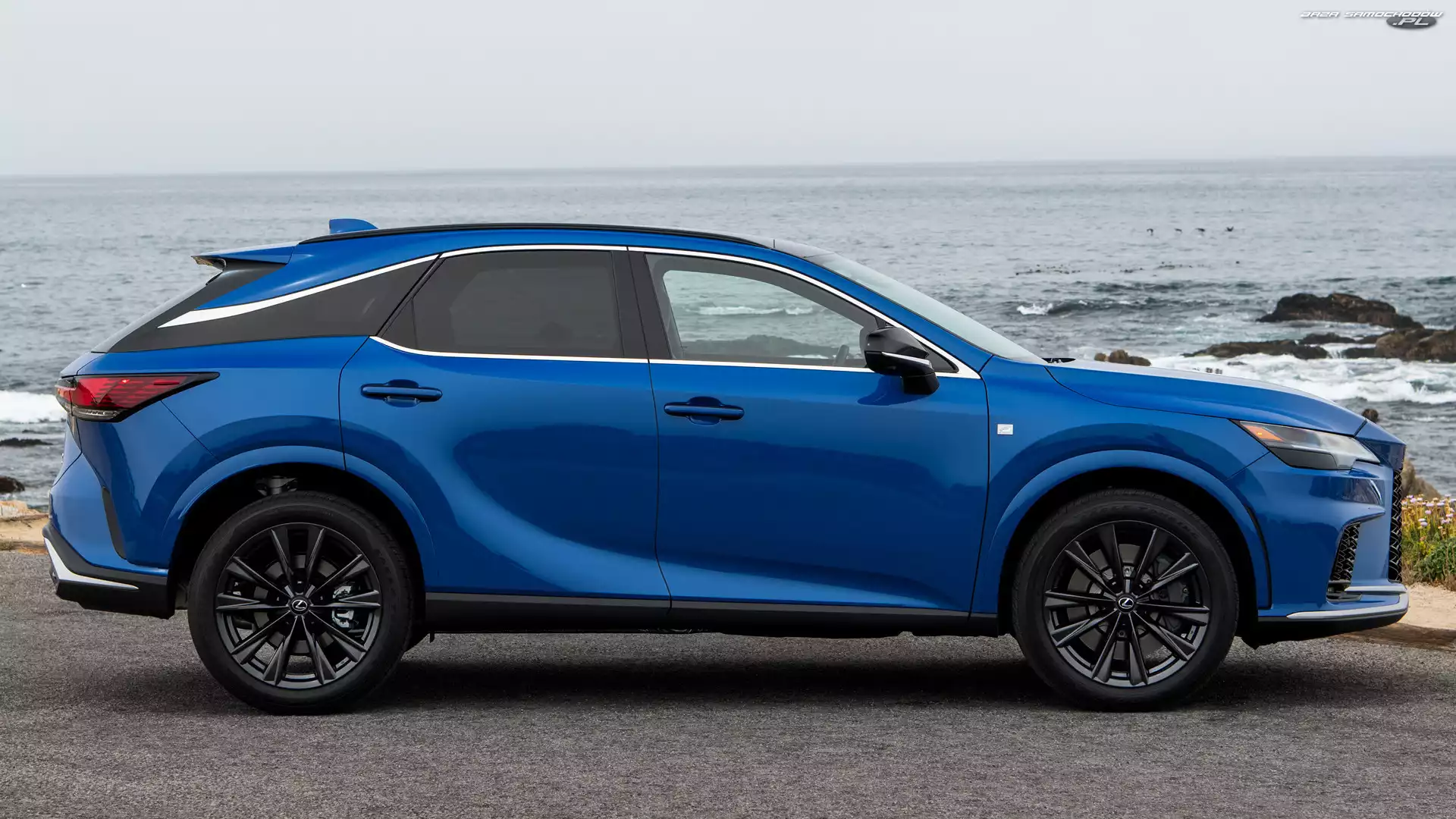 Niebieski, Lexus RX F Sport, Bok, Tył Lexus RX Hybrid F Sport Lexus RX F Sport, Niebieski Lexus RX 450h F Lexus RX, 2021 2023, Lexus RX F Sport Lexus RX 350L, 2018 RX 450h, Samochód, Lexus Lexus RX Hybryda Lexus RX F Sport Plug-in Hybryda, Lexus RX Lexus RX Moonlight Edition Lexus RX 450hL 350L, Samochód, Lexus RX
