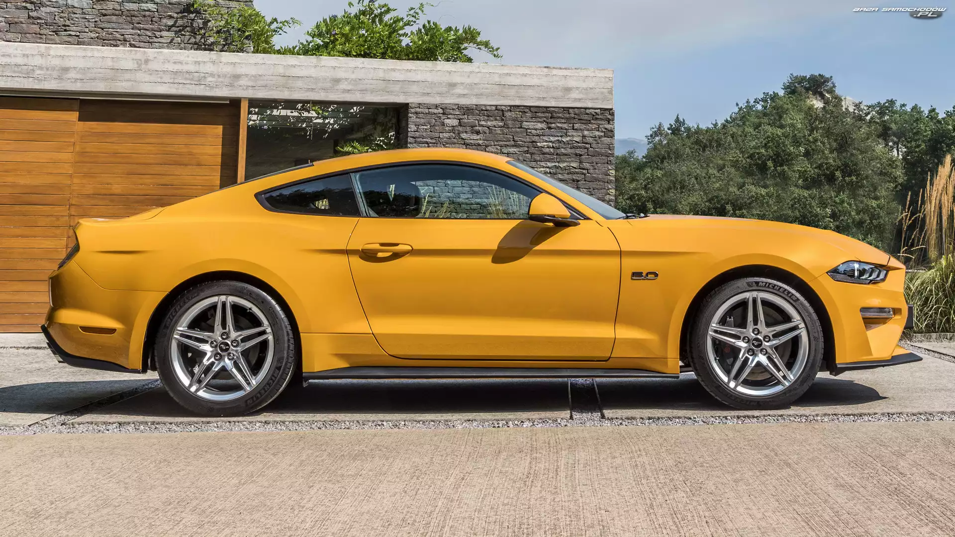 Samochód: Bok, Żółty, Ford Mustang GT